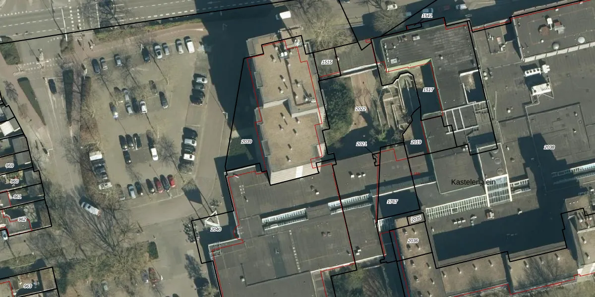 Het perceel waarop Kastelenplein 37 staat heeft een oppervlakte van 1253 m². Dit is een zeer groot perceel. De perceeloppervlakte wordt geregistreerd door het Kadaster. Gedetailleerde informatie over de maten van dit perceel kunt u vinden in het rapport Kadastrale kaart met maatvoering van Kastelenplein 37.