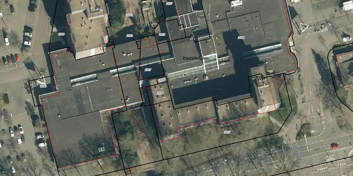 Het perceel waarop Kastelenplein 74 staat heeft een oppervlakte van 4556 m². Dit is een zeer groot perceel. De perceeloppervlakte wordt geregistreerd door het Kadaster. Gedetailleerde informatie over de maten van dit perceel kunt u vinden in het rapport Kadastrale kaart met maatvoering van Kastelenplein 74.