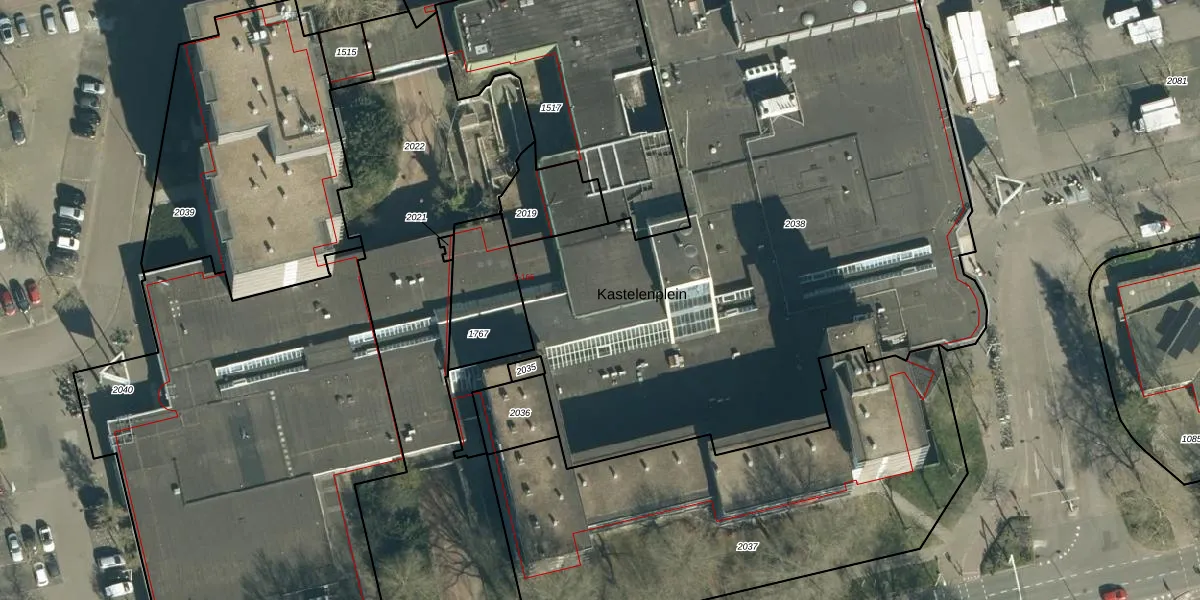 Het perceel waarop Kastelenplein 77 staat heeft een oppervlakte van 4556 m². Dit is een zeer groot perceel. De perceeloppervlakte wordt geregistreerd door het Kadaster. Gedetailleerde informatie over de maten van dit perceel kunt u vinden in het rapport Kadastrale kaart met maatvoering van Kastelenplein 77.
