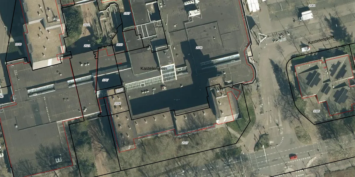 Het perceel waarop Kastelenplein 80 staat heeft een oppervlakte van 4556 m². Dit is een zeer groot perceel. De perceeloppervlakte wordt geregistreerd door het Kadaster. Gedetailleerde informatie over de maten van dit perceel kunt u vinden in het rapport Kadastrale kaart met maatvoering van Kastelenplein 80.