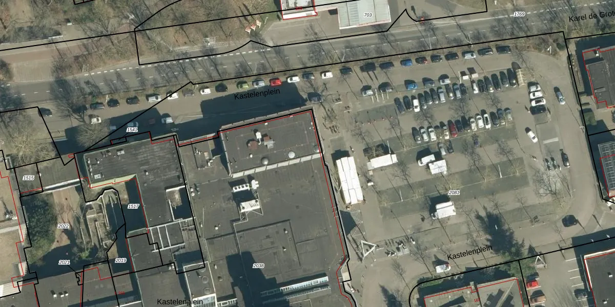 Het perceel waarop Kastelenplein 88 staat heeft een oppervlakte van 4556 m². Dit is een zeer groot perceel. De perceeloppervlakte wordt geregistreerd door het Kadaster. Gedetailleerde informatie over de maten van dit perceel kunt u vinden in het rapport Kadastrale kaart met maatvoering van Kastelenplein 88.