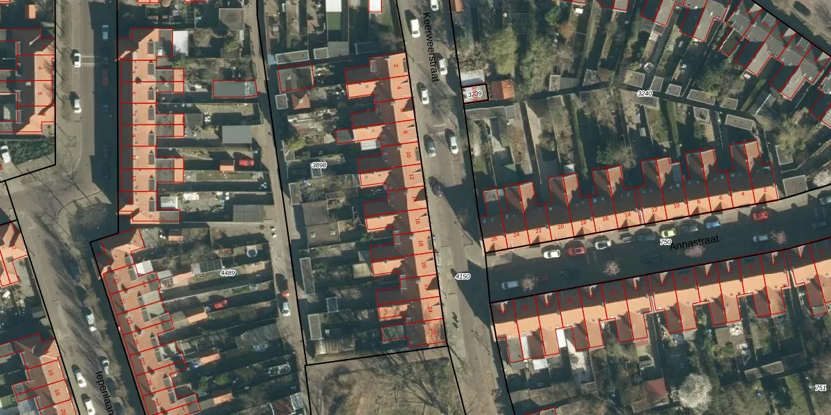 Het perceel waarop Keerweerstraat 14 staat heeft een oppervlakte van 3455 m². Dit is een zeer groot perceel. De perceeloppervlakte wordt geregistreerd door het Kadaster. Gedetailleerde informatie over de maten van dit perceel kunt u vinden in het rapport Kadastrale kaart met maatvoering van Keerweerstraat 14.