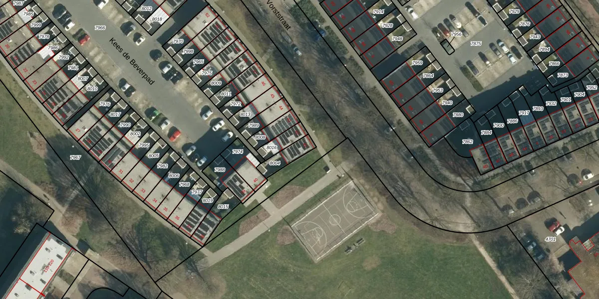 Kees de Beverpad 41 is gelegen op kadastraal perceel WSL01G8004. Deze kadastrale aanduiding is uniek en wordt gebruikt door het Kadaster om eigendomsrechten en andere zakelijke rechten vast te leggen. Het perceel maakt onderdeel uit van de kadastrale gemeente Woensel.