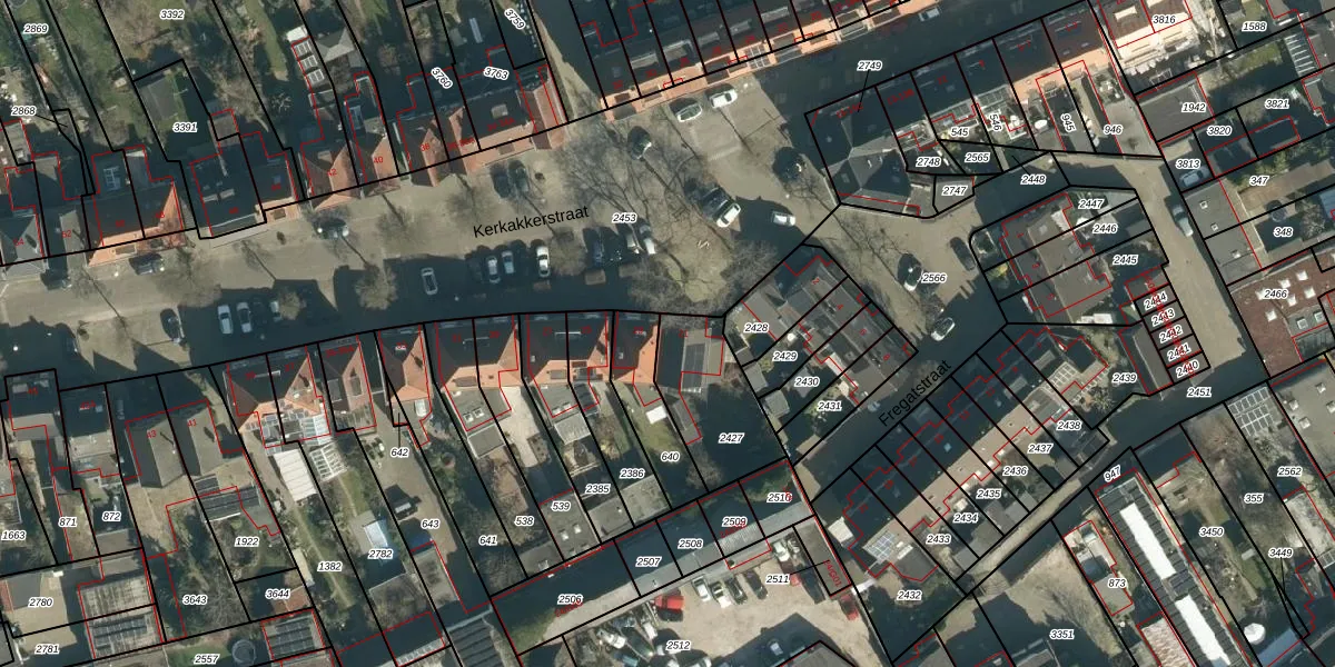 Kerkakkerstraat 21 is gelegen op kadastraal perceel STR03D2427. Deze kadastrale aanduiding is uniek en wordt gebruikt door het Kadaster om eigendomsrechten en andere zakelijke rechten vast te leggen. Het perceel maakt onderdeel uit van de kadastrale gemeente Strijp.