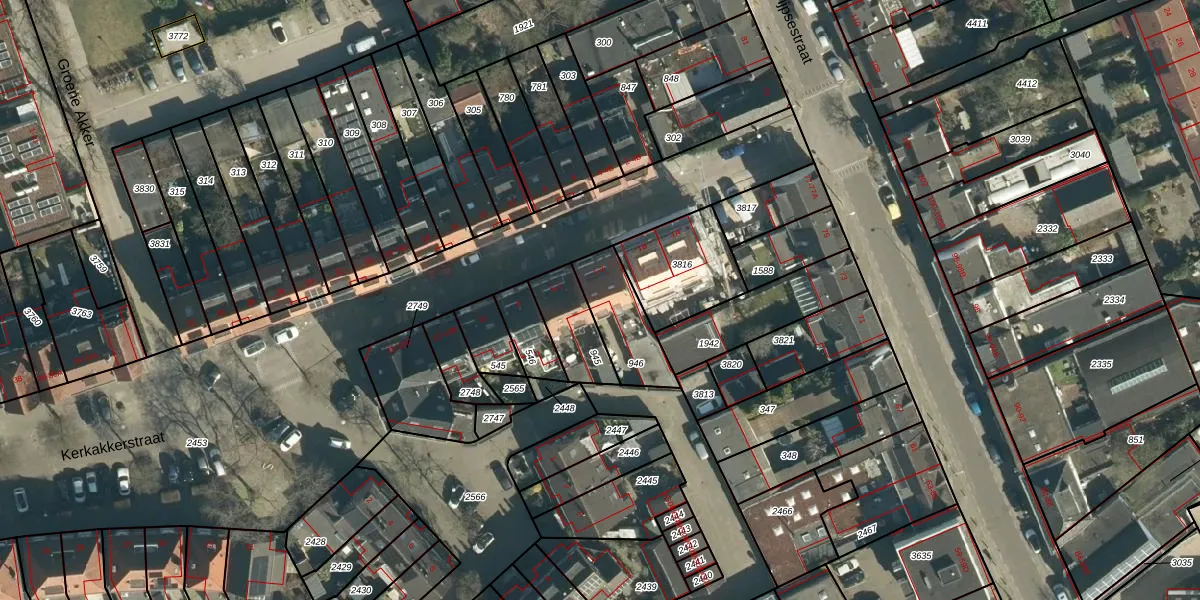 Kerkakkerstraat 3 is gelegen op kadastraal perceel STR03D946. Deze kadastrale aanduiding is uniek en wordt gebruikt door het Kadaster om eigendomsrechten en andere zakelijke rechten vast te leggen. Het perceel maakt onderdeel uit van de kadastrale gemeente Strijp.