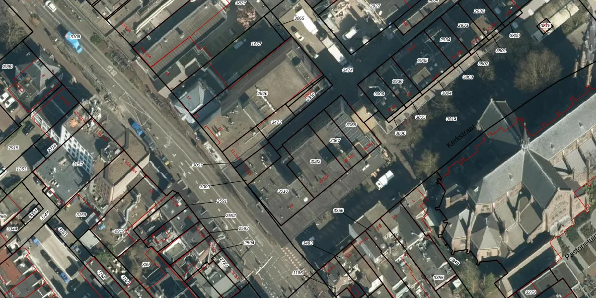 Kerkstraat 42-34 is gelegen op kadastraal perceel EHV00D3082. Deze kadastrale aanduiding is uniek en wordt gebruikt door het Kadaster om eigendomsrechten en andere zakelijke rechten vast te leggen. Het perceel maakt onderdeel uit van de kadastrale gemeente Eindhoven.