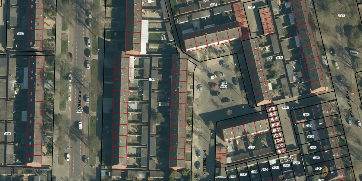 Kersenstraat 15 is gelegen op kadastraal perceel WSL01C1582. Deze kadastrale aanduiding is uniek en wordt gebruikt door het Kadaster om eigendomsrechten en andere zakelijke rechten vast te leggen. Het perceel maakt onderdeel uit van de kadastrale gemeente Woensel.