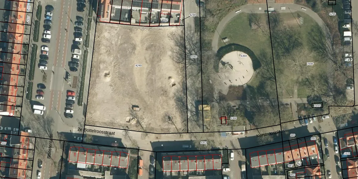 Het perceel waarop Kerstroosplein 26 staat heeft een oppervlakte van 3172 m². Dit is een zeer groot perceel. De perceeloppervlakte wordt geregistreerd door het Kadaster. Gedetailleerde informatie over de maten van dit perceel kunt u vinden in het rapport Kadastrale kaart met maatvoering van Kerstroosplein 26.