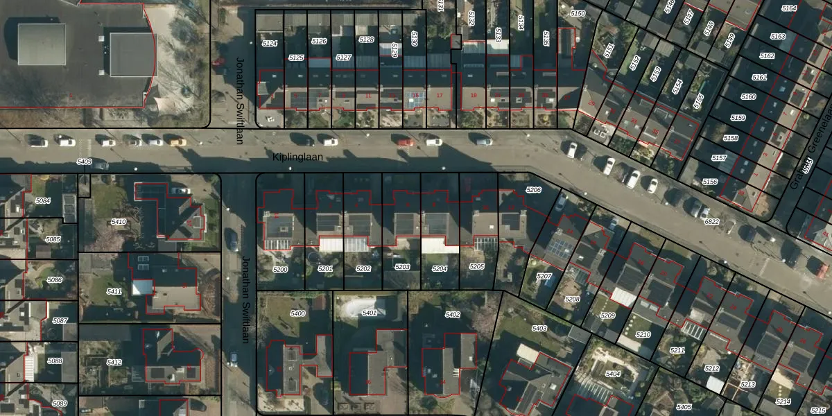 Kiplinglaan 6 is gelegen op kadastraal perceel WSL01W5203. Deze kadastrale aanduiding is uniek en wordt gebruikt door het Kadaster om eigendomsrechten en andere zakelijke rechten vast te leggen. Het perceel maakt onderdeel uit van de kadastrale gemeente Woensel.
