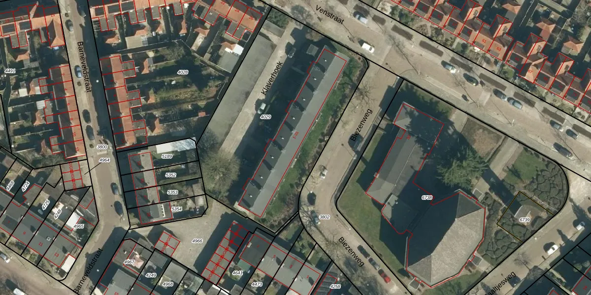 Klaverhoek 9 is gelegen op kadastraal perceel STR03C4029. Deze kadastrale aanduiding is uniek en wordt gebruikt door het Kadaster om eigendomsrechten en andere zakelijke rechten vast te leggen. Het perceel maakt onderdeel uit van de kadastrale gemeente Strijp.