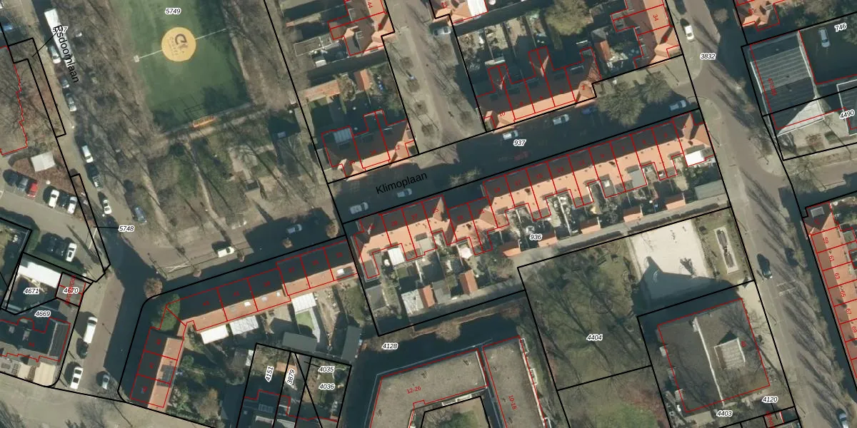 Klimoplaan 25 is gelegen op kadastraal perceel STR03C936. Deze kadastrale aanduiding is uniek en wordt gebruikt door het Kadaster om eigendomsrechten en andere zakelijke rechten vast te leggen. Het perceel maakt onderdeel uit van de kadastrale gemeente Strijp.