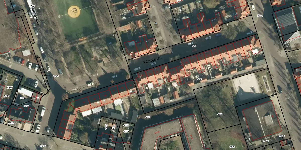 Klimoplaan 29 is gelegen op kadastraal perceel STR03C936. Deze kadastrale aanduiding is uniek en wordt gebruikt door het Kadaster om eigendomsrechten en andere zakelijke rechten vast te leggen. Het perceel maakt onderdeel uit van de kadastrale gemeente Strijp.