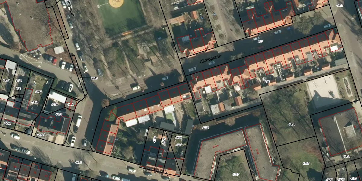 Klimoplaan 33 is gelegen op kadastraal perceel STR03C4128. Deze kadastrale aanduiding is uniek en wordt gebruikt door het Kadaster om eigendomsrechten en andere zakelijke rechten vast te leggen. Het perceel maakt onderdeel uit van de kadastrale gemeente Strijp.
