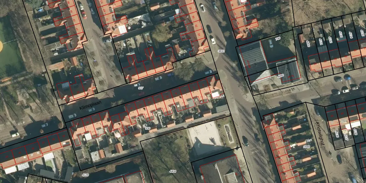 Klimoplaan 7 is gelegen op kadastraal perceel STR03C936. Deze kadastrale aanduiding is uniek en wordt gebruikt door het Kadaster om eigendomsrechten en andere zakelijke rechten vast te leggen. Het perceel maakt onderdeel uit van de kadastrale gemeente Strijp.