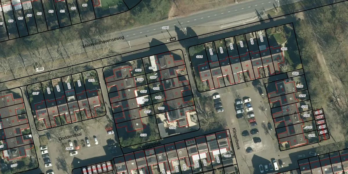 Gebruik de zoekbalk of klik op een perceel voor informatie over de adressen binnen dit perceel.