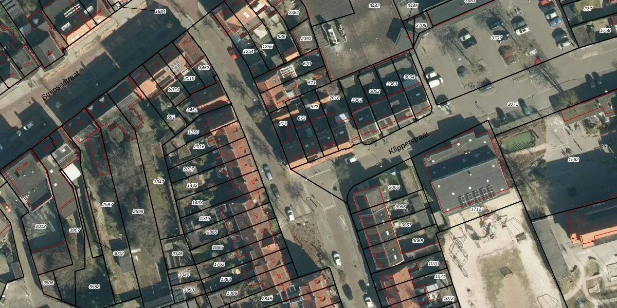 Gebruik de zoekbalk of klik op een perceel voor informatie over de adressen binnen dit perceel.