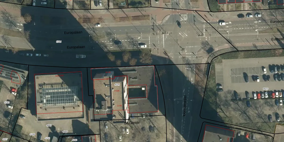 Het adres is gelegen op perceel 4324 in de sectie G en de kadastrale gemeente Woensel. De kadastrale aanduiding is aldus WSL01-G-4324. Het perceel is met 1815 m² relatief groot. Het gemiddelde ligt in de kadastrale gemeente Woensel op 1038,98 m². Het grootste perceel in de kadastrale gemeente is 74,9 ha. Het kleinste perceel heeft een oppervlakte van 0 m². Op het perceel liggen in totaal 106 adressen. In de Basisregistratie Kadaster (BRK) werden de grenzen van het perceel geregistreerd op 12-04-2006.