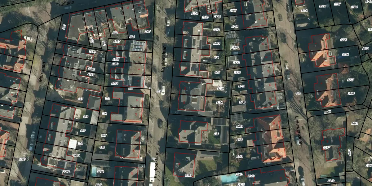 Het perceel waarop Koekoeklaan 13 staat heeft een oppervlakte van 304 m². Dit is een groot perceel. De perceeloppervlakte wordt geregistreerd door het Kadaster. Gedetailleerde informatie over de maten van dit perceel kunt u vinden in het rapport Kadastrale kaart met maatvoering van Koekoeklaan 13.