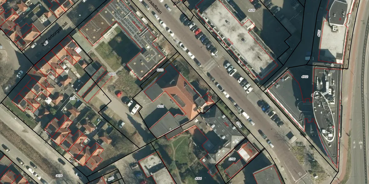 Gebruik de zoekbalk of klik op een perceel voor informatie over de adressen binnen dit perceel.