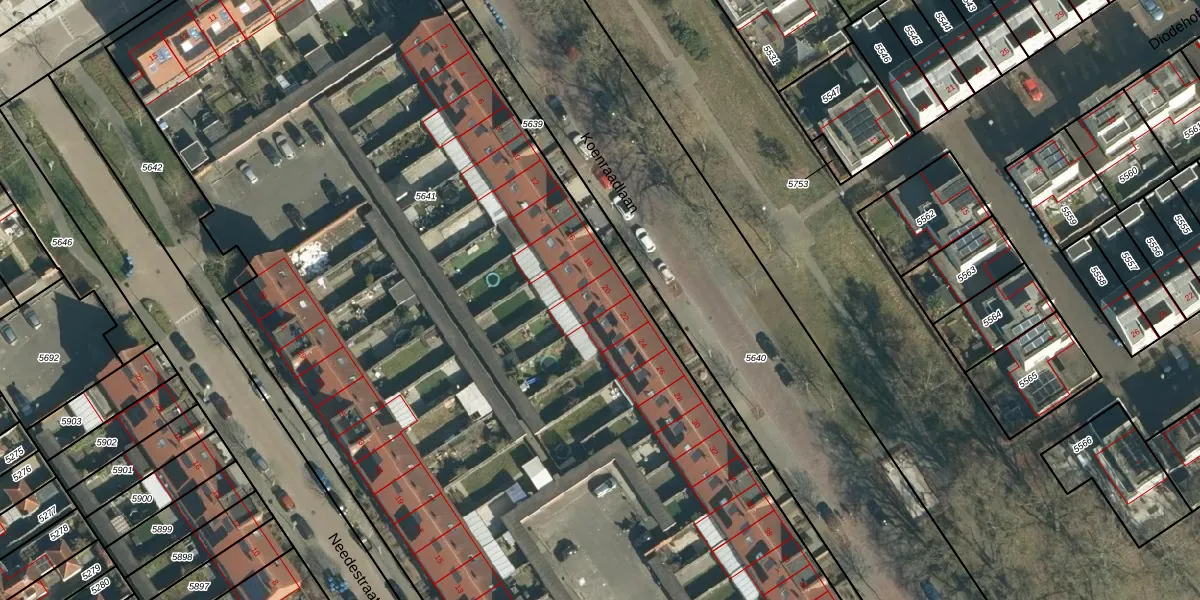Het perceel waarop Koenraadlaan 20 staat heeft een oppervlakte van 8995 m². Dit is een zeer groot perceel. De perceeloppervlakte wordt geregistreerd door het Kadaster. Gedetailleerde informatie over de maten van dit perceel kunt u vinden in het rapport Kadastrale kaart met maatvoering van Koenraadlaan 20.