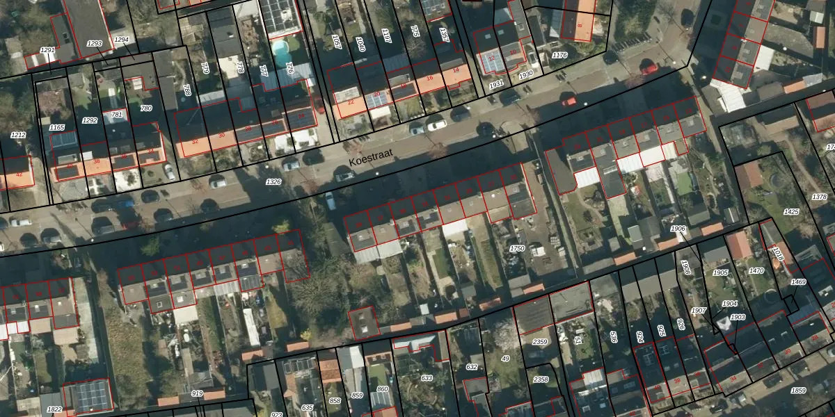 Koestraat 33 is gelegen op kadastraal perceel TGR00F1750. Deze kadastrale aanduiding is uniek en wordt gebruikt door het Kadaster om eigendomsrechten en andere zakelijke rechten vast te leggen. Het perceel maakt onderdeel uit van de kadastrale gemeente Tongelre.