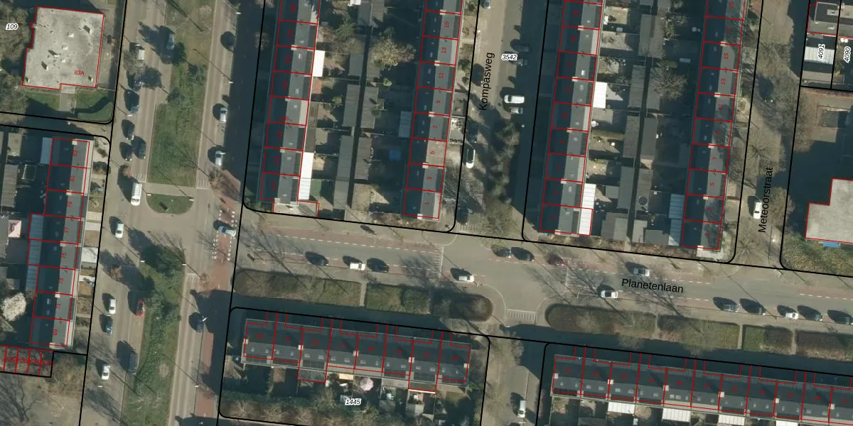 Het perceel waarop Kompasweg 1 staat heeft een oppervlakte van 1,0 ha. Dit is een zeer groot perceel. De perceeloppervlakte wordt geregistreerd door het Kadaster. Gedetailleerde informatie over de maten van dit perceel kunt u vinden in het rapport Kadastrale kaart met maatvoering van Kompasweg 1.