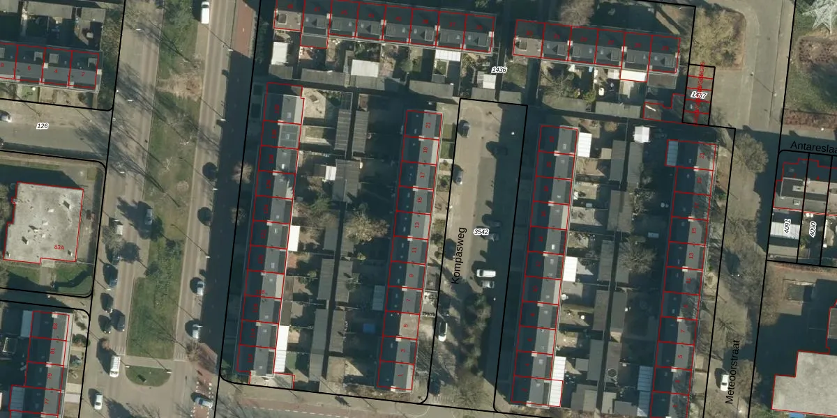 Het perceel waarop Kompasweg 15 staat heeft een oppervlakte van 1,0 ha. Dit is een zeer groot perceel. De perceeloppervlakte wordt geregistreerd door het Kadaster. Gedetailleerde informatie over de maten van dit perceel kunt u vinden in het rapport Kadastrale kaart met maatvoering van Kompasweg 15.