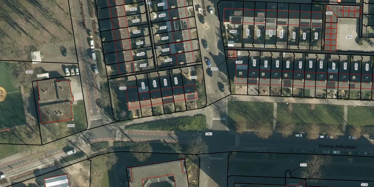 Koning Arthurlaan 63 is gelegen op kadastraal perceel WSL01P3593. Deze kadastrale aanduiding is uniek en wordt gebruikt door het Kadaster om eigendomsrechten en andere zakelijke rechten vast te leggen. Het perceel maakt onderdeel uit van de kadastrale gemeente Woensel.