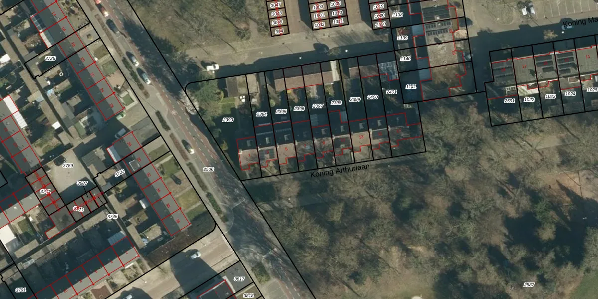 Koning Arthurlaan 7 is gelegen op kadastraal perceel WSL01P2396. Deze kadastrale aanduiding is uniek en wordt gebruikt door het Kadaster om eigendomsrechten en andere zakelijke rechten vast te leggen. Het perceel maakt onderdeel uit van de kadastrale gemeente Woensel.