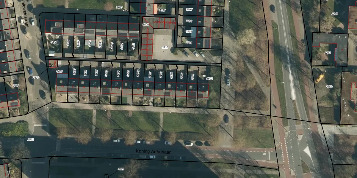 Koning Arthurlaan 87 is gelegen op kadastraal perceel WSL01P3500. Deze kadastrale aanduiding is uniek en wordt gebruikt door het Kadaster om eigendomsrechten en andere zakelijke rechten vast te leggen. Het perceel maakt onderdeel uit van de kadastrale gemeente Woensel.
