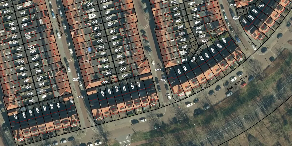 Gebruik de zoekbalk of klik op een perceel voor informatie over de adressen binnen dit perceel.