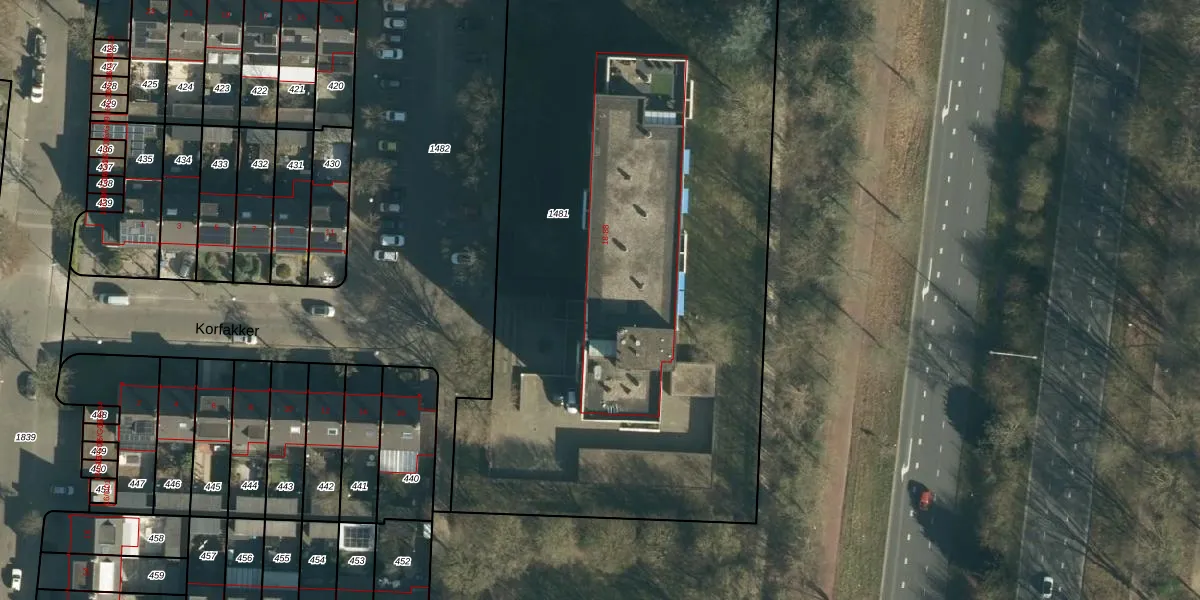 Het perceel waarop Korfakker 44 staat heeft een oppervlakte van 4163 m². Dit is een zeer groot perceel. De perceeloppervlakte wordt geregistreerd door het Kadaster. Gedetailleerde informatie over de maten van dit perceel kunt u vinden in het rapport Kadastrale kaart met maatvoering van Korfakker 44.