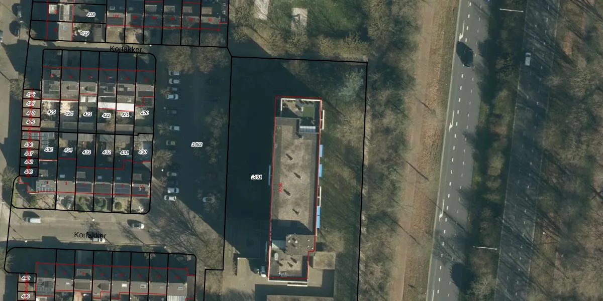 Korfakker 54-A is gelegen op kadastraal perceel WSL01M1481. Deze kadastrale aanduiding is uniek en wordt gebruikt door het Kadaster om eigendomsrechten en andere zakelijke rechten vast te leggen. Het perceel maakt onderdeel uit van de kadastrale gemeente Woensel.