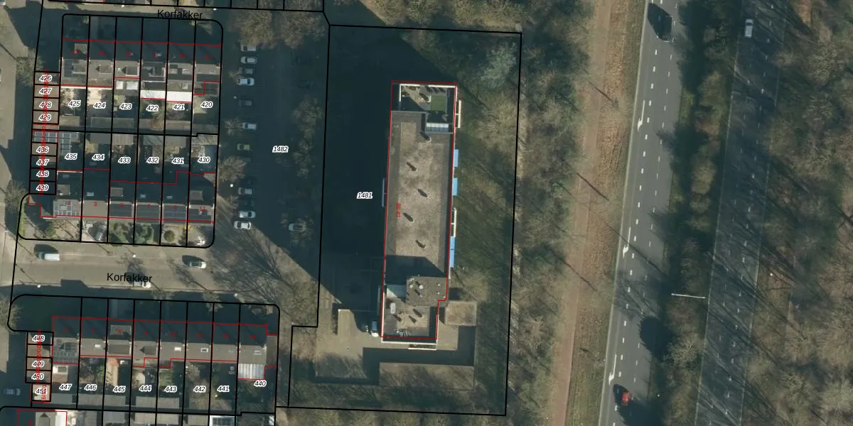 Het perceel waarop Korfakker 58-A staat heeft een oppervlakte van 4163 m². Dit is een zeer groot perceel. De perceeloppervlakte wordt geregistreerd door het Kadaster. Gedetailleerde informatie over de maten van dit perceel kunt u vinden in het rapport Kadastrale kaart met maatvoering van Korfakker 58-A.
