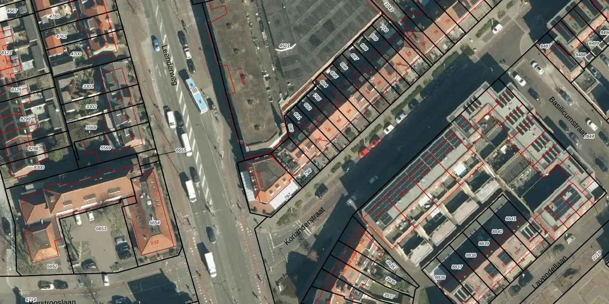 Gebruik de zoekbalk of klik op een perceel voor informatie over de adressen binnen dit perceel.