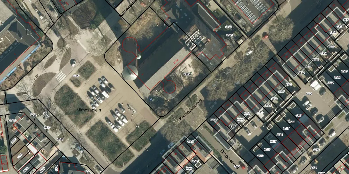 Het perceel waarop Korianderstraat 42-A staat heeft een oppervlakte van 2095 m². Dit is een zeer groot perceel. De perceeloppervlakte wordt geregistreerd door het Kadaster. Gedetailleerde informatie over de maten van dit perceel kunt u vinden in het rapport Kadastrale kaart met maatvoering van Korianderstraat 42-A.