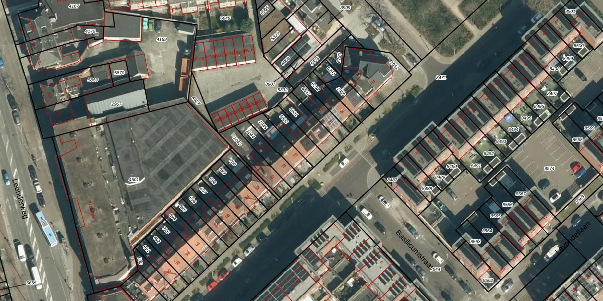Gebruik de zoekbalk of klik op een perceel voor informatie over de adressen binnen dit perceel.