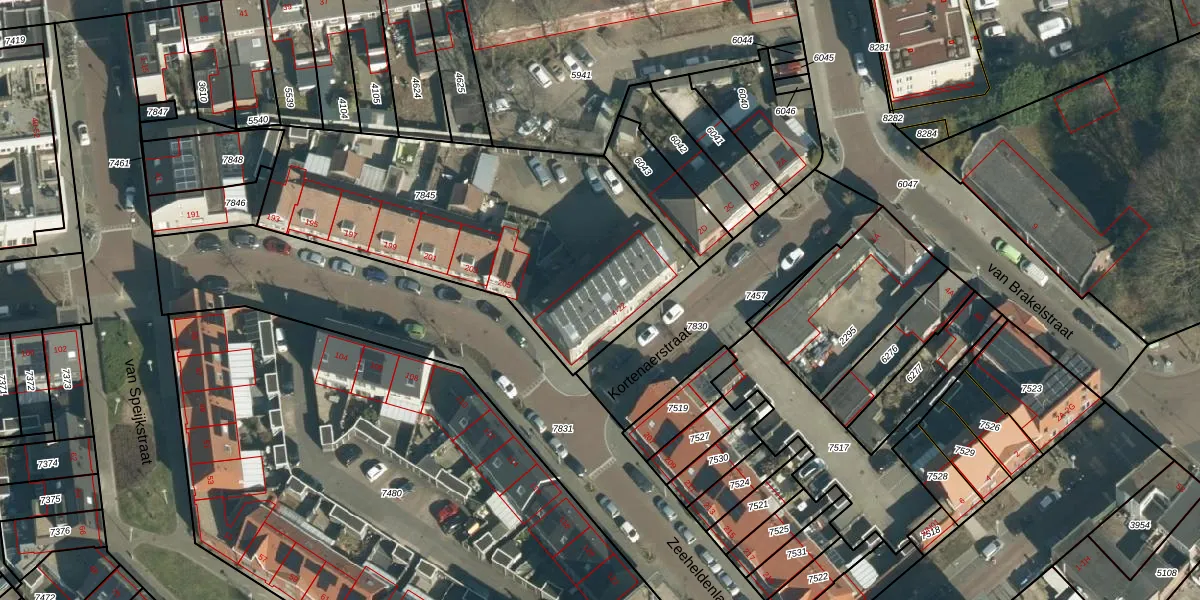 Kortenaerstraat 6 is gelegen op kadastraal perceel WSL01G7845. Deze kadastrale aanduiding is uniek en wordt gebruikt door het Kadaster om eigendomsrechten en andere zakelijke rechten vast te leggen. Het perceel maakt onderdeel uit van de kadastrale gemeente Woensel.