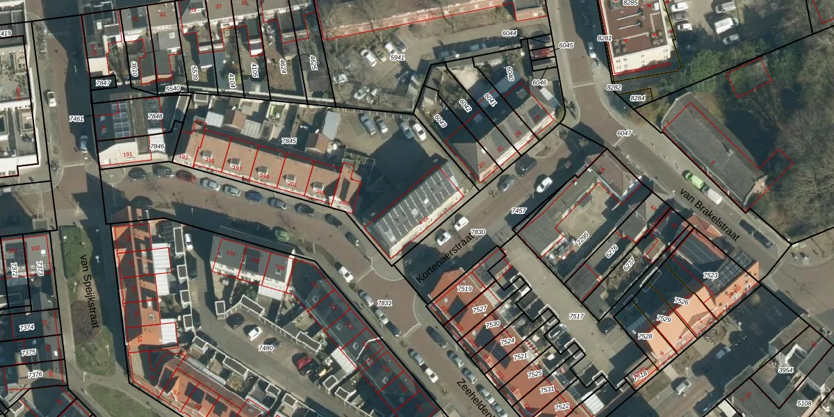 Kortenaerstraat 8 is gelegen op kadastraal perceel WSL01G7845. Deze kadastrale aanduiding is uniek en wordt gebruikt door het Kadaster om eigendomsrechten en andere zakelijke rechten vast te leggen. Het perceel maakt onderdeel uit van de kadastrale gemeente Woensel.