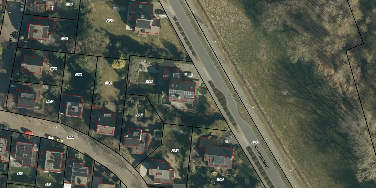 Het perceel waarop Kosmoslaan 17 staat heeft een oppervlakte van 1346 m². Dit is een zeer groot perceel. De perceeloppervlakte wordt geregistreerd door het Kadaster. Gedetailleerde informatie over de maten van dit perceel kunt u vinden in het rapport Kadastrale kaart met maatvoering van Kosmoslaan 17.