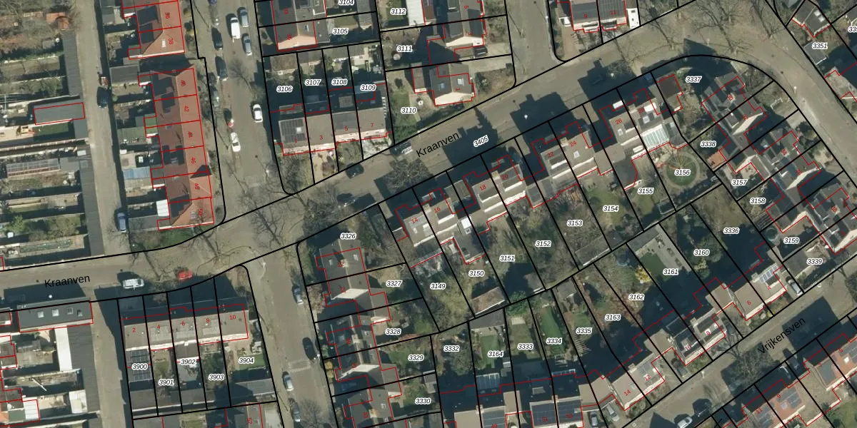 Gebruik de zoekbalk of klik op een perceel voor informatie over de adressen binnen dit perceel.