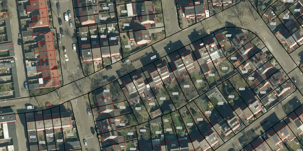 Het perceel waarop Kraanven 18 staat heeft een oppervlakte van 310 m². Dit is een groot perceel. De perceeloppervlakte wordt geregistreerd door het Kadaster. Gedetailleerde informatie over de maten van dit perceel kunt u vinden in het rapport Kadastrale kaart met maatvoering van Kraanven 18.
