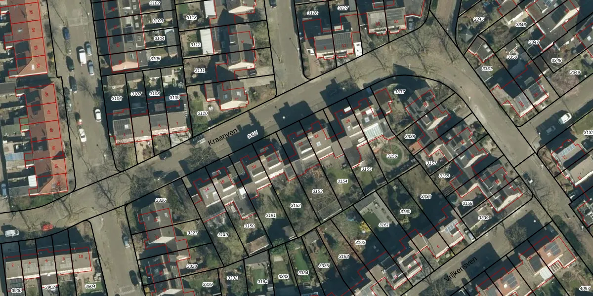 Het perceel waarop Kraanven 22 staat heeft een oppervlakte van 303 m². Dit is een groot perceel. De perceeloppervlakte wordt geregistreerd door het Kadaster. Gedetailleerde informatie over de maten van dit perceel kunt u vinden in het rapport Kadastrale kaart met maatvoering van Kraanven 22.