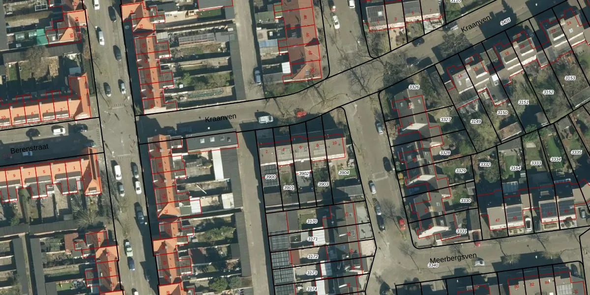 Het perceel waarop Kraanven 6 staat heeft een oppervlakte van 165 m². Dit is een middelgroot perceel. De perceeloppervlakte wordt geregistreerd door het Kadaster. Gedetailleerde informatie over de maten van dit perceel kunt u vinden in het rapport Kadastrale kaart met maatvoering van Kraanven 6.