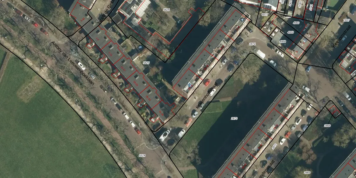 Het perceel waarop Kraijenhoffstraat 64 staat heeft een oppervlakte van 2967 m². Dit is een zeer groot perceel. De perceeloppervlakte wordt geregistreerd door het Kadaster. Gedetailleerde informatie over de maten van dit perceel kunt u vinden in het rapport Kadastrale kaart met maatvoering van Kraijenhoffstraat 64.
