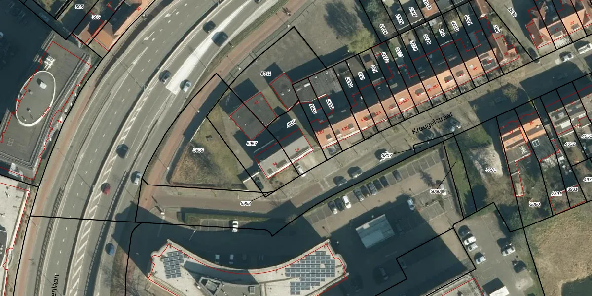 Kreugelstraat 54 is gelegen op kadastraal perceel STR03C4510. Deze kadastrale aanduiding is uniek en wordt gebruikt door het Kadaster om eigendomsrechten en andere zakelijke rechten vast te leggen. Het perceel maakt onderdeel uit van de kadastrale gemeente Strijp.