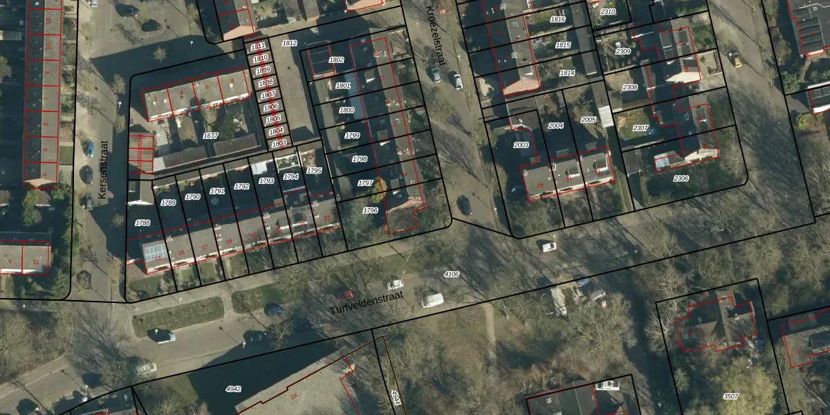 Gebruik de zoekbalk of klik op een perceel voor informatie over de adressen binnen dit perceel.