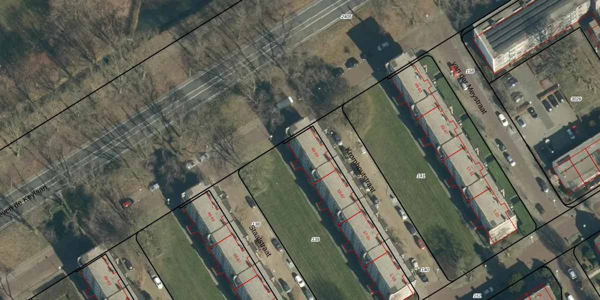 Het perceel waarop Kromhoutstraat 57 staat heeft een oppervlakte van 2042 m². Dit is een zeer groot perceel. De perceeloppervlakte wordt geregistreerd door het Kadaster. Gedetailleerde informatie over de maten van dit perceel kunt u vinden in het rapport Kadastrale kaart met maatvoering van Kromhoutstraat 57.
