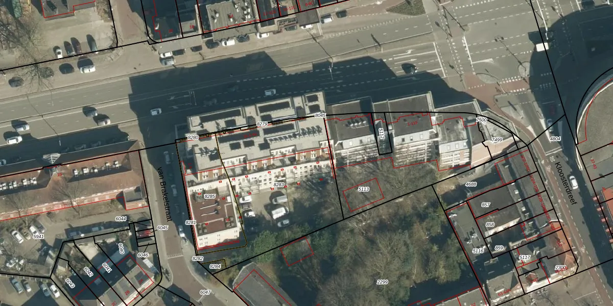 Het perceel waarop het adres ligt is WSL01-G-8283. De afkorting 'WSL01' staat voor kadastrale gemeente Woensel. Het perceel is met 1370 m² relatief groot. Het gemiddelde ligt in de kadastrale gemeente Woensel op 1038,98 m². Het kleinste perceel in de kadastrale gemeente is 0 m² groot. De grootste perceeloppervlakte is 74,9 ha. Op het perceel zijn 28 adressen aanwezig. In de Basisregistratie Kadaster (BRK) werden de grenzen van het perceel geregistreerd op 15-07-2020.