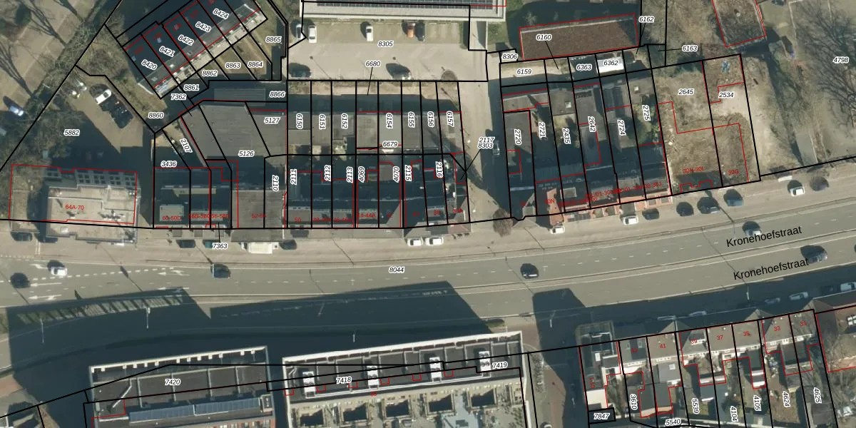 Het perceel waarop Kronehoefstraat 38 staat heeft een oppervlakte van 76 m². Dit is een klein perceel. De perceeloppervlakte wordt geregistreerd door het Kadaster. Gedetailleerde informatie over de maten van dit perceel kunt u vinden in het rapport Kadastrale kaart met maatvoering van Kronehoefstraat 38.